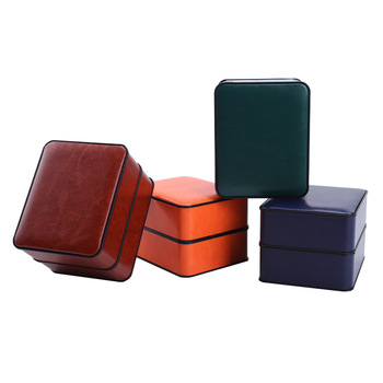 علبة ساعة من الجلد الصناعي مدورة بسعر الجملة غطاء قابل للطي يمكن طباعة الشعار
